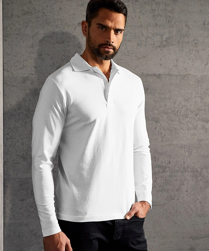 Hochwertig verarbeitetes Langarm-Polo mit 3 Knöpfen Ton in Ton. Piqué, 100 % Baumwolle, 220 g/m², S–5XL.
