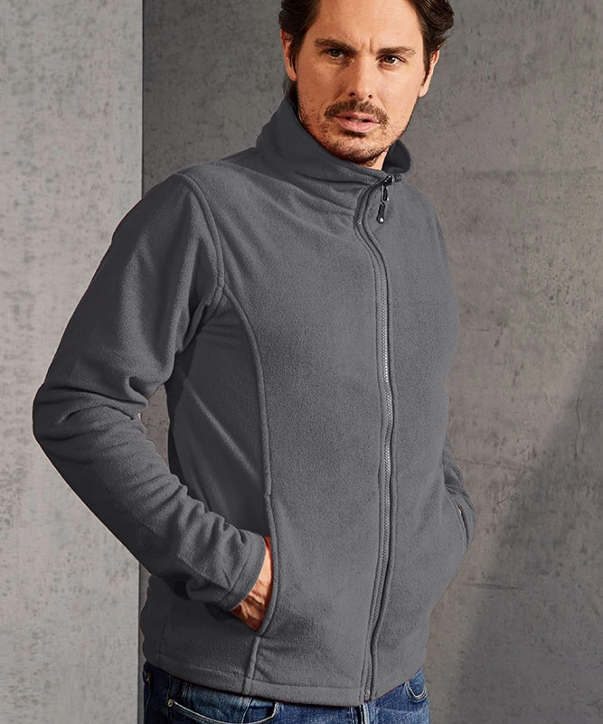 Jacke, Stehkragen, durchgehender Reißverschluss, Einschubtaschen, Fixierung für Außenjacke, neutrales Größenetikett, Anti-Pilling-Ausrüstung, Microfleece, 100 % Polyester, 250 g/m² , S–5XL.